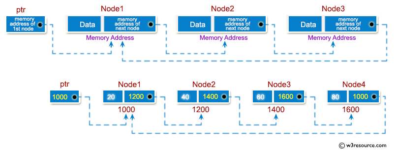 printf("\n\n Circular Linked List : Create and display a circular linked list :\n");