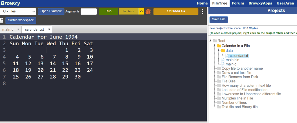 ক্যালেন্ডার ১৯৯৪, ৬ (জুন) একটি ফাইলে আউটপুট দেখাই: