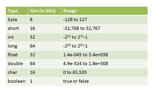 | double | 64 | 2.3E-308 to 1.7E+308 |